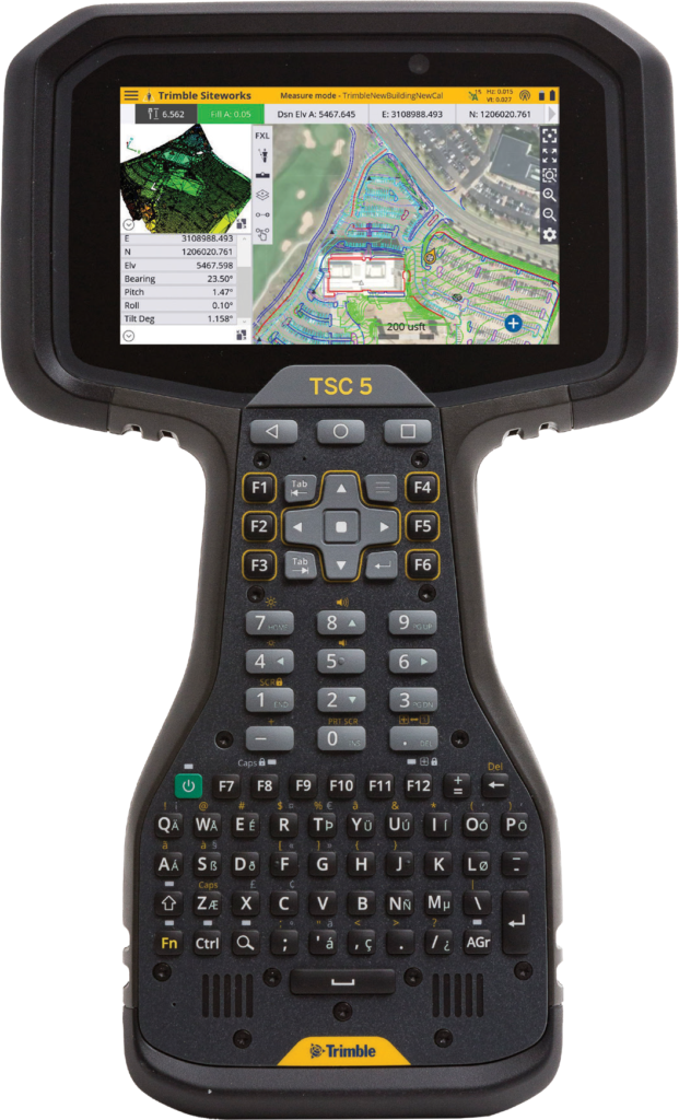 The Trimble® TSC5 Controller is the dependable, modern, next-generation survey controller that enables you and your team to get the job done efficiently and accurately, every day, all day. This Android™-based survey controller features a 5-inch screen and full keyboard that ensures fast, efficient operation, even while wearing gloves. Rugged yet lightweight, with all-day battery power, the TSC5 controller is easy to carry and easy to use for on-site tasks. When combined with Trimble Siteworks Software, the TSC5 offers the ideal blend of high performance and reliability you expect from Trimble.